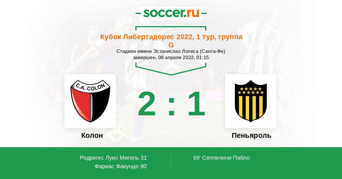Протокол матча Колон против Пеньяроль
