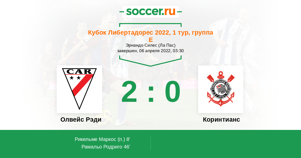 Протокол матча Олвейс Рэди против Коринтианс