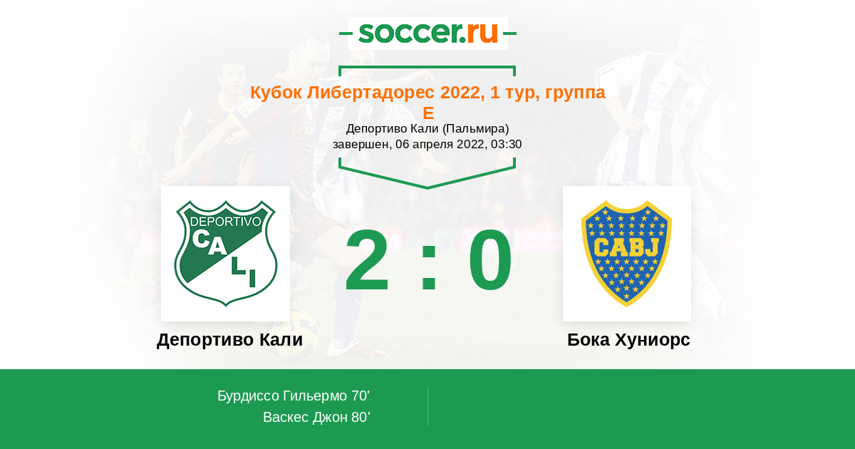 Протокол матча Депортиво Кали против Бока Хуниорс