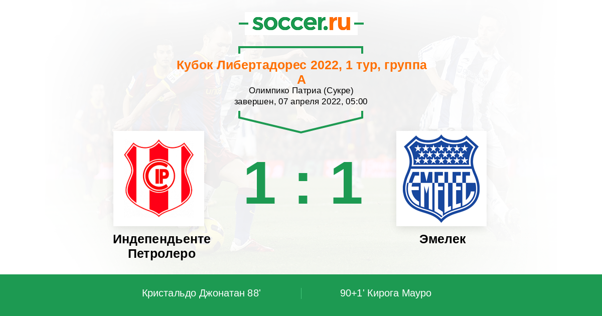 Протокол матча Индепендьенте Петролеро против Эмелек