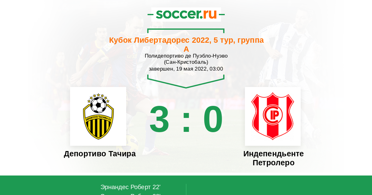 Протокол матча Депортиво Тачира против Индепендьенте Петролеро
