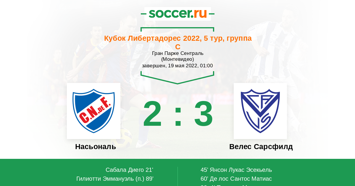 21' (1:0) Сабала Диего (22) (Кандидо Камило (6))