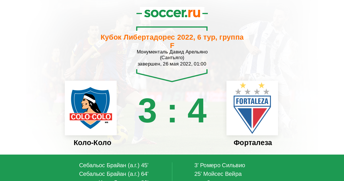 Протокол матча Коло-Коло против Форталеза