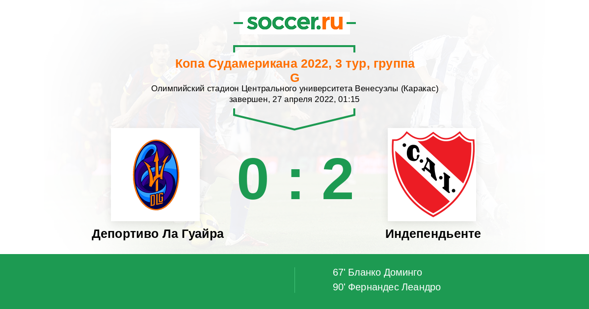 Протокол матча Депортиво Ла Гуайра против Индепендьенте