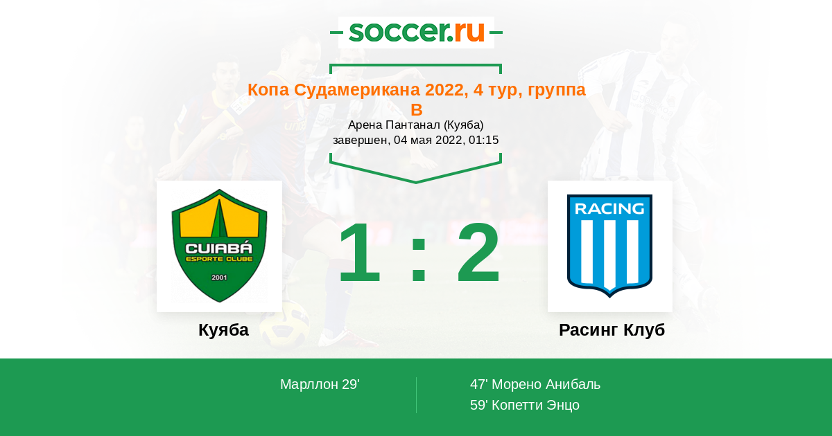 Протокол матча Куяба против Расинг Клуб