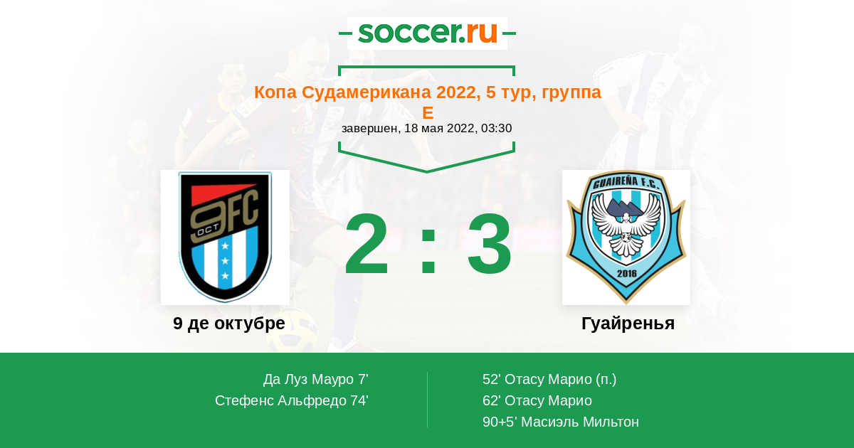 Протокол матча 9 де октубре против Гуайренья