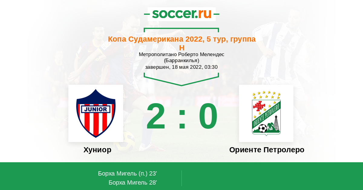 Протокол матча Хуниор против Ориенте Петролеро