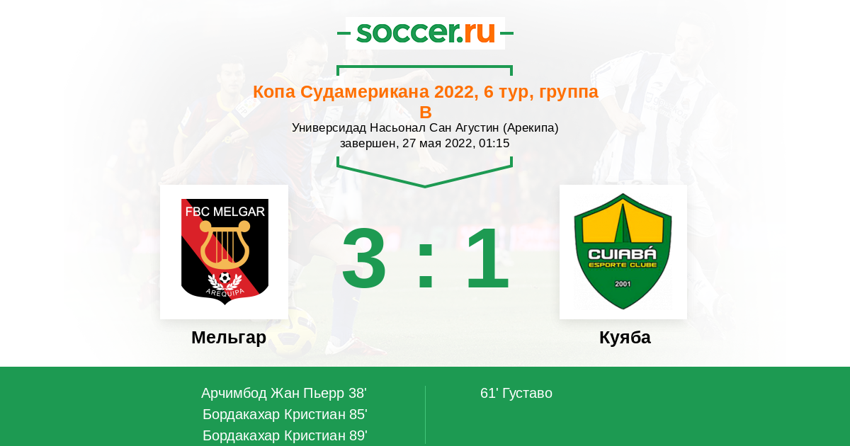 89' (3:1) Бордакахар Кристиан (7) (Куэста Бернардо (9))