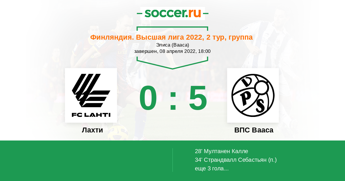 Протокол матча Лахти против ВПС Вааса