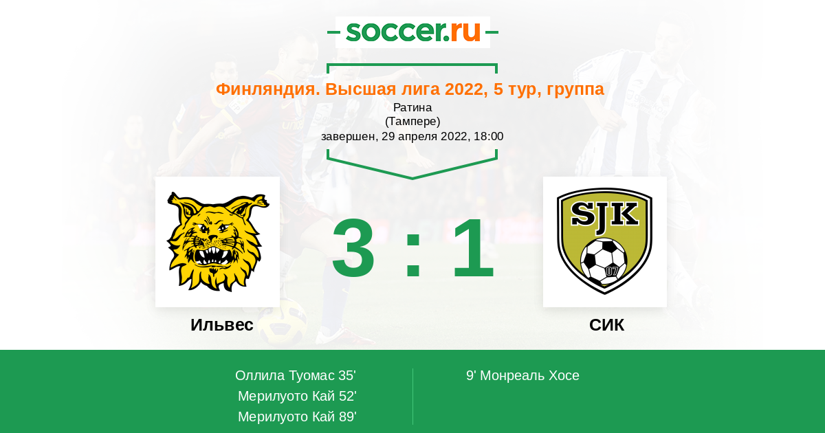 Протокол матча Ильвес против СИК