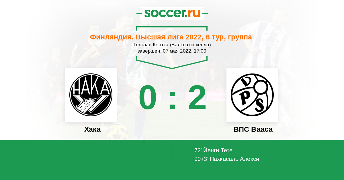 Протокол матча Хака против ВПС Вааса