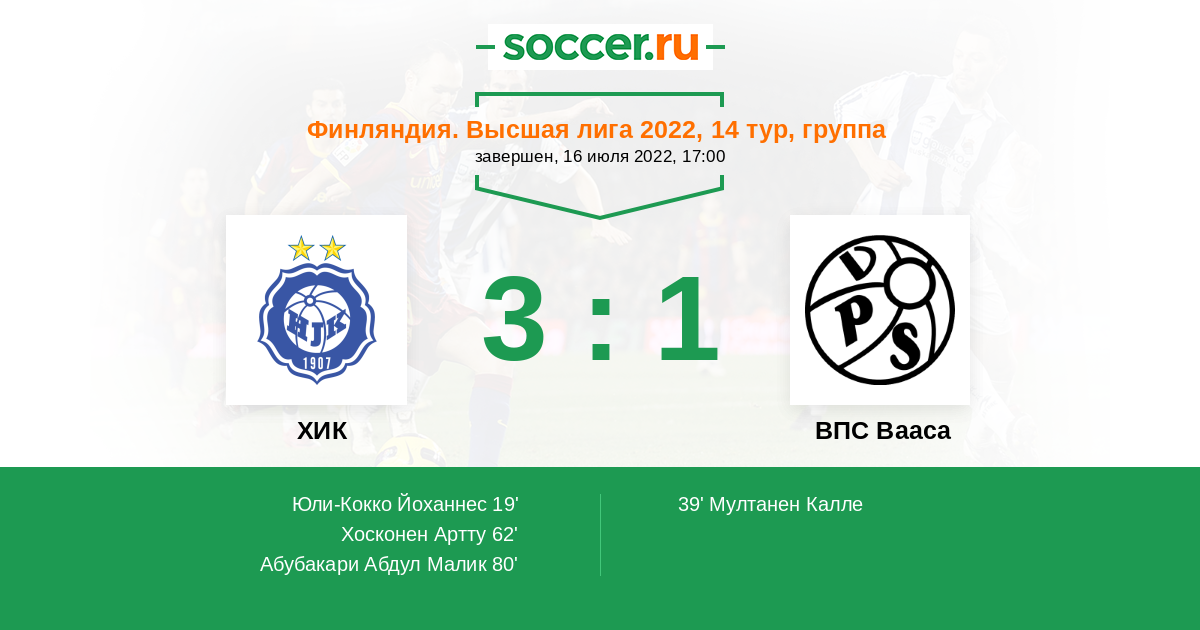80' (3:1) Абубакари Абдул Малик (77) (Вяянянен Сантери (21))