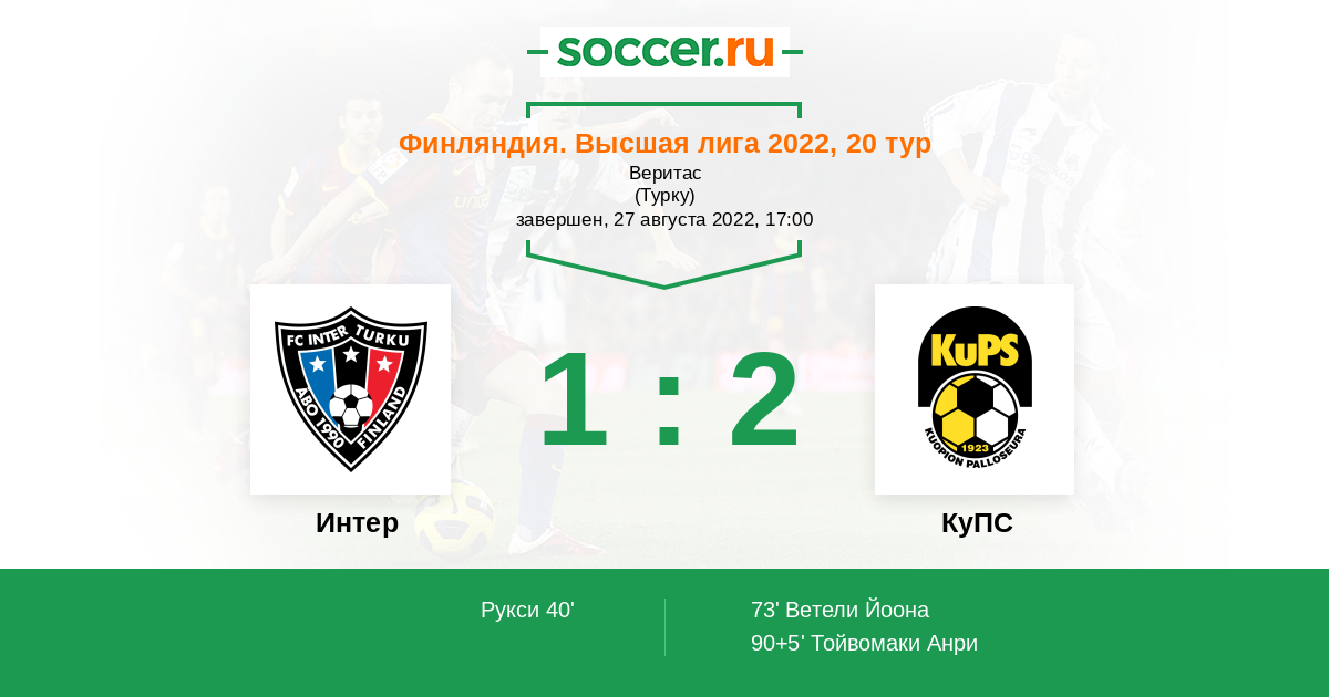 Протокол матча Интер против КуПС
