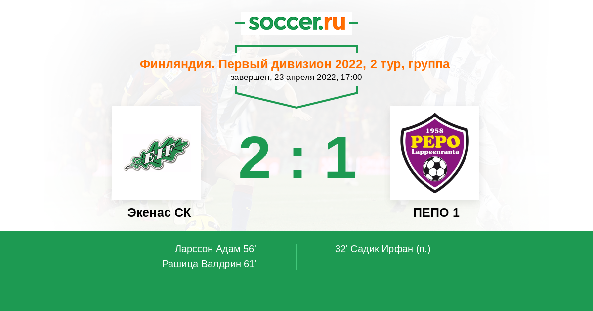 Протокол матча Экенас СК против ПЕПО 1