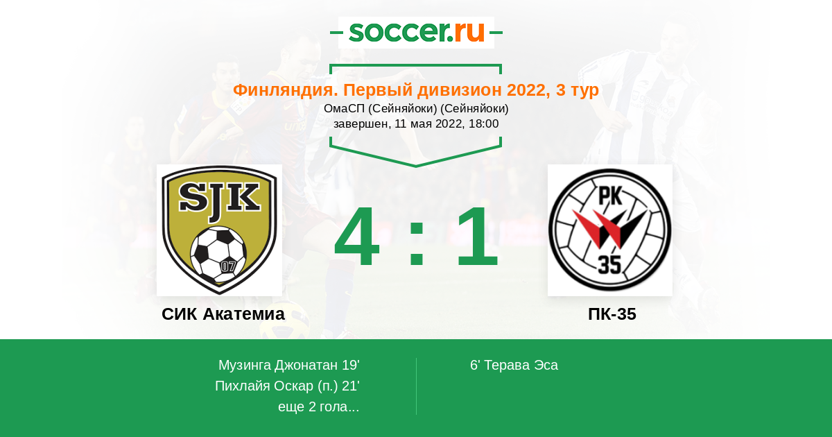 Протокол матча СИК Акатемиа против ПК-35