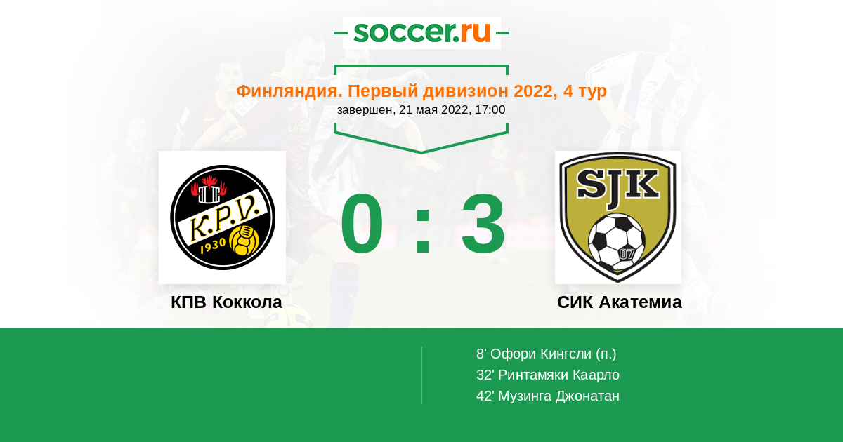 Протокол матча КПВ Коккола против СИК Акатемиа
