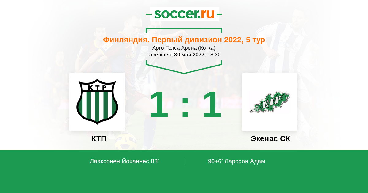 83' (1:0) Лааксонен Йоханнес (8)