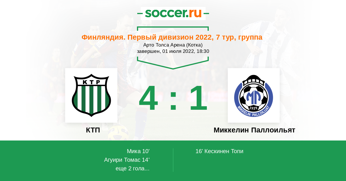 Протокол матча КТП против Миккелин Паллоильят