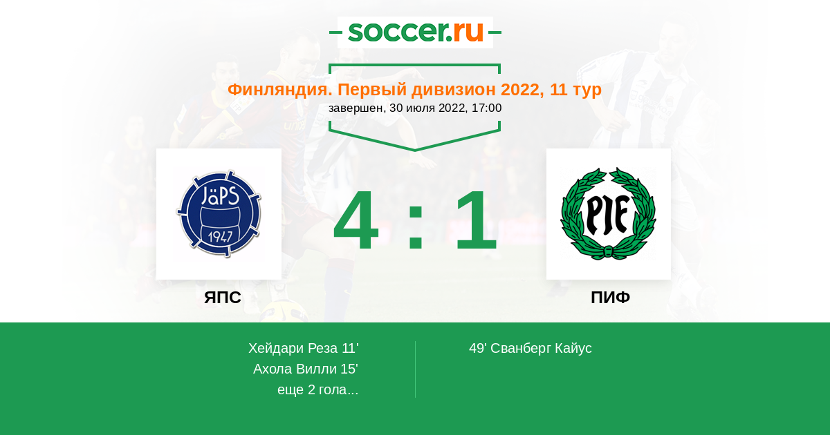 Протокол матча ЯПС против ПИФ