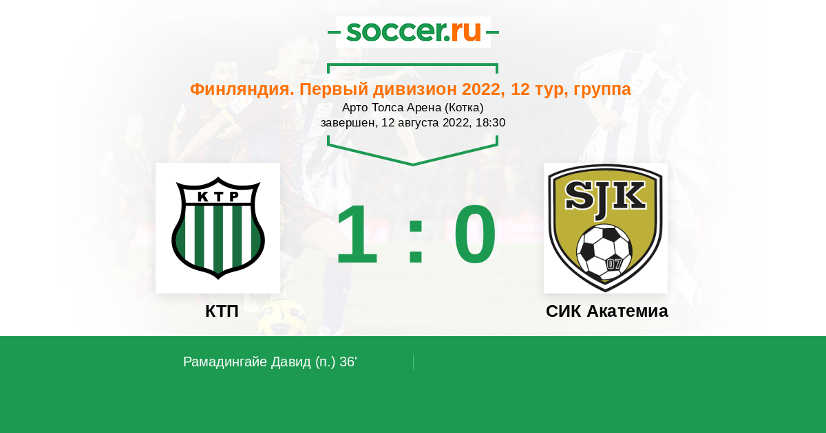 Протокол матча КТП против СИК Акатемиа