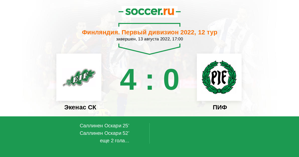 Протокол матча Экенас СК против ПИФ