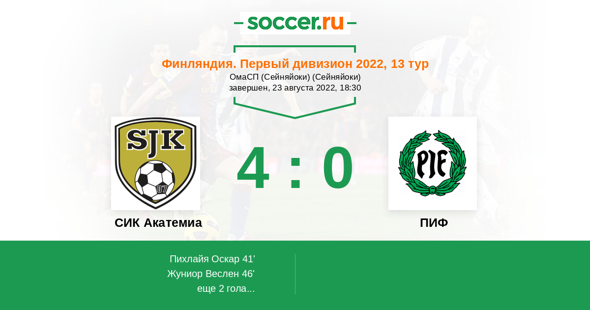 Протокол матча СИК Акатемиа против ПИФ