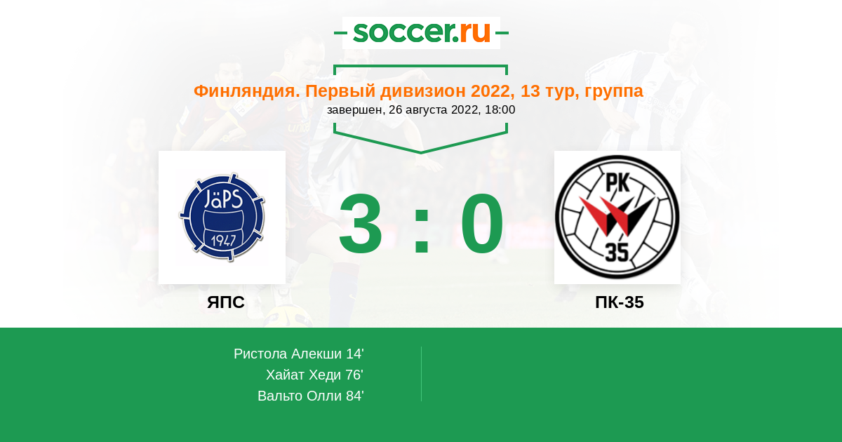 Протокол матча ЯПС против ПК-35