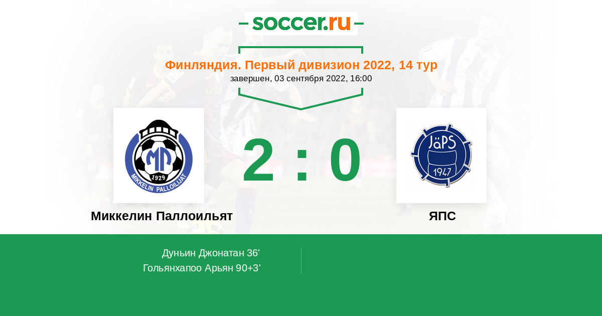 Протокол матча Миккелин Паллоильят против ЯПС