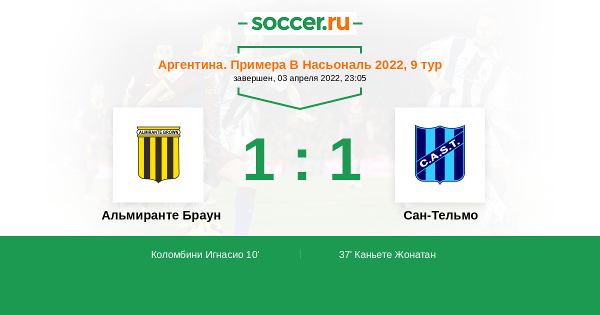 Протокол матча Альмиранте Браун против Сан-Тельмо