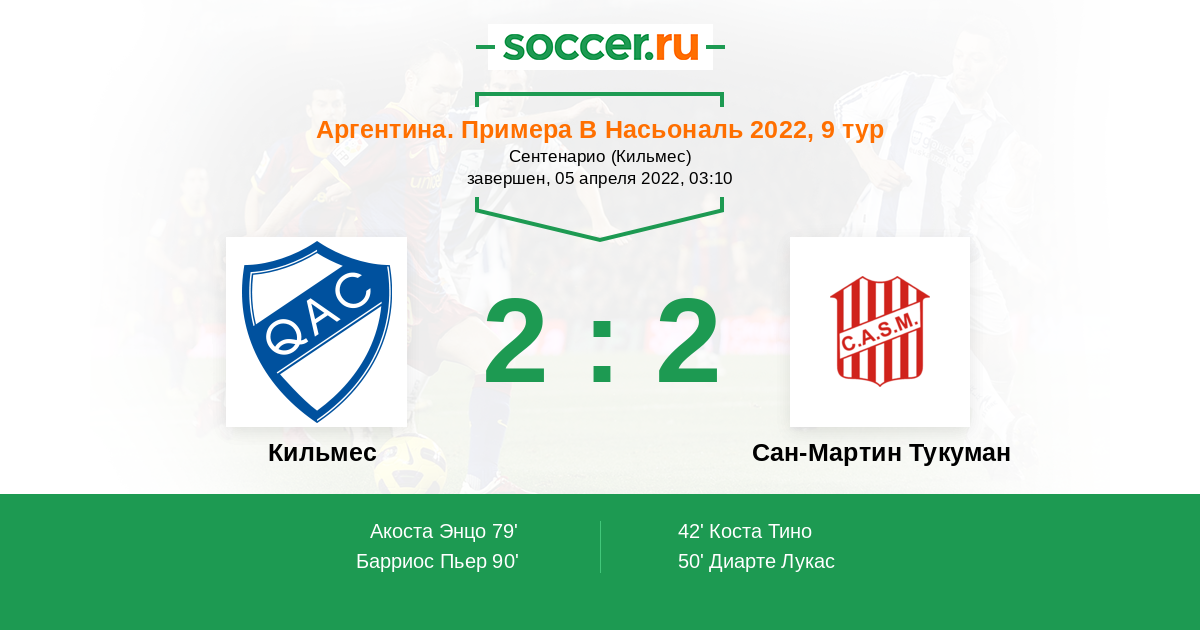 Протокол матча Кильмес против Сан-Мартин Тукуман