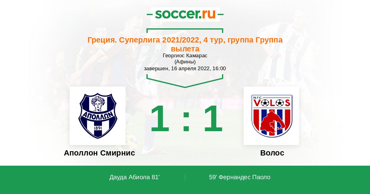 81' (1:1) Дауда Абиола (27) (Витлис Вассилис (3))