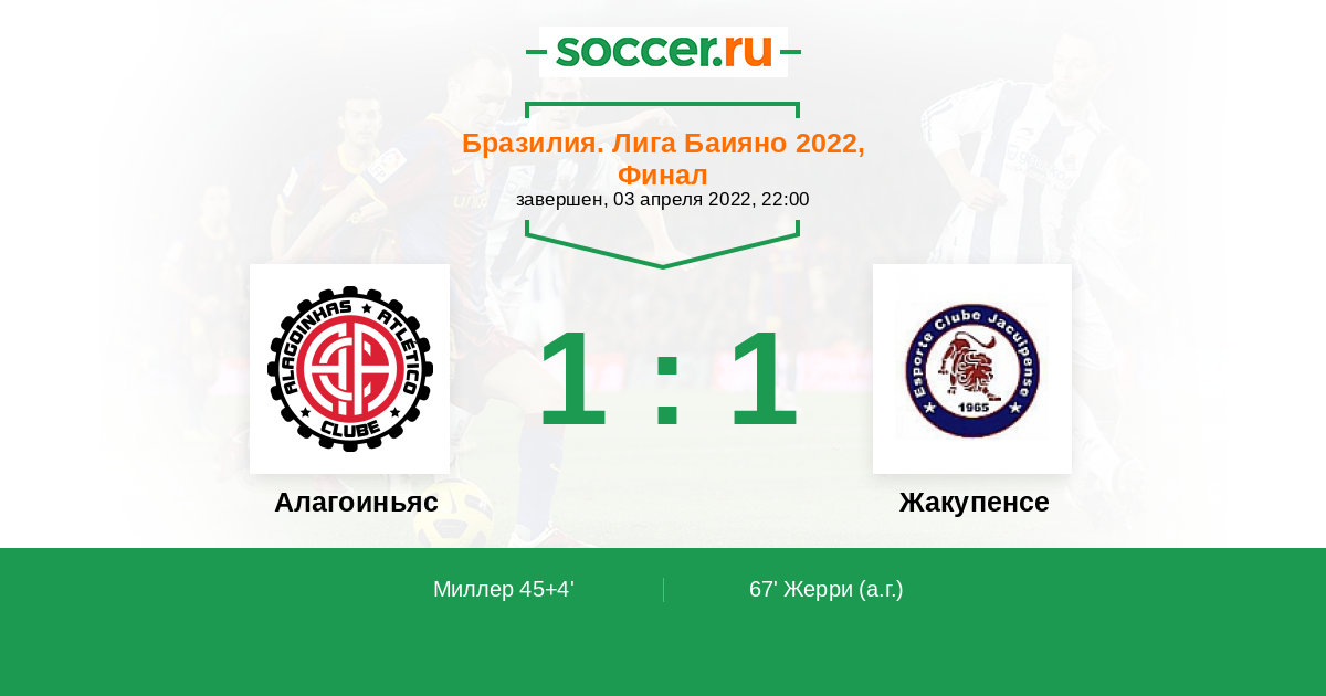Протокол матча Алагоиньяс против Жакупенсе