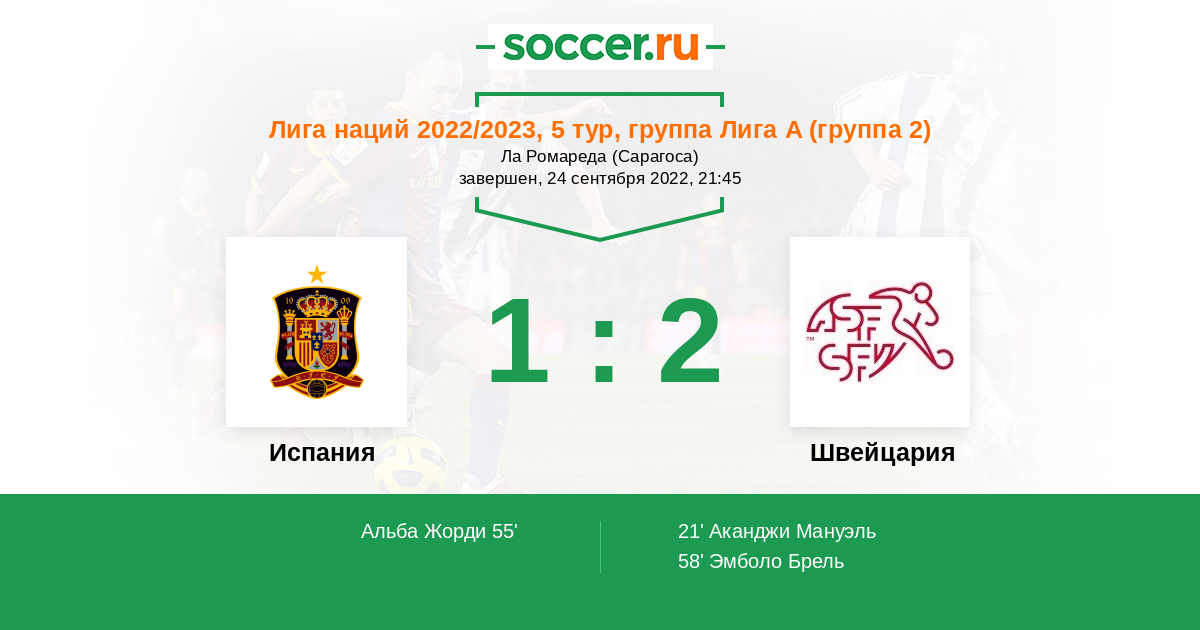 Протокол матча Испания против Швейцария