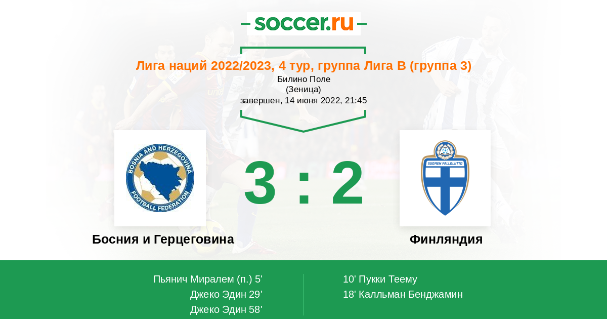 Протокол матча Босния и Герцеговина против Финляндия