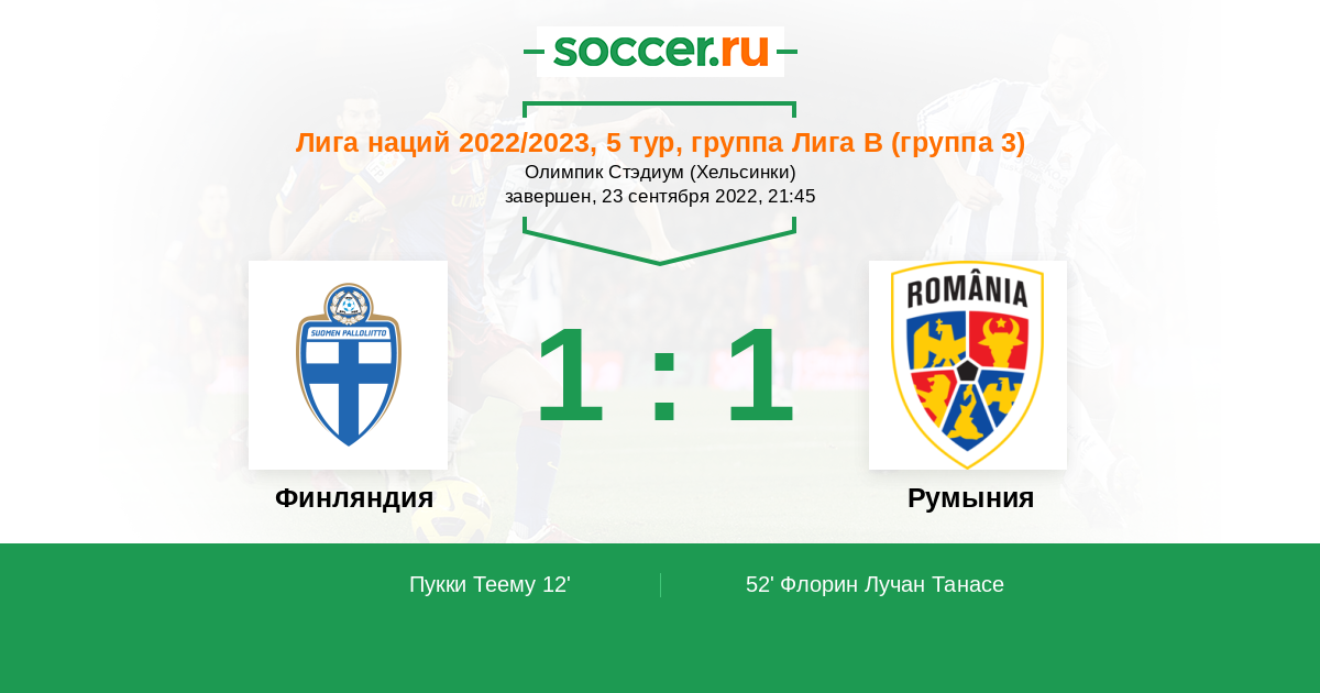 В этом матче,такое чувство,что много голов не увидим,хотя по логике победа нужна обеим командам,фины теоретически если выиграют сегодня,могут побороться за первое место,румыны могут остаться в теме дальше этой!! Но вот только команды мало забивают,думаю ИТ2М(1,5).
