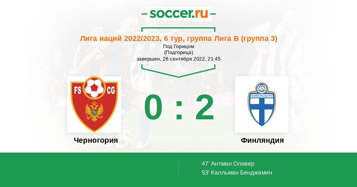 Протокол матча Черногория против Финляндия