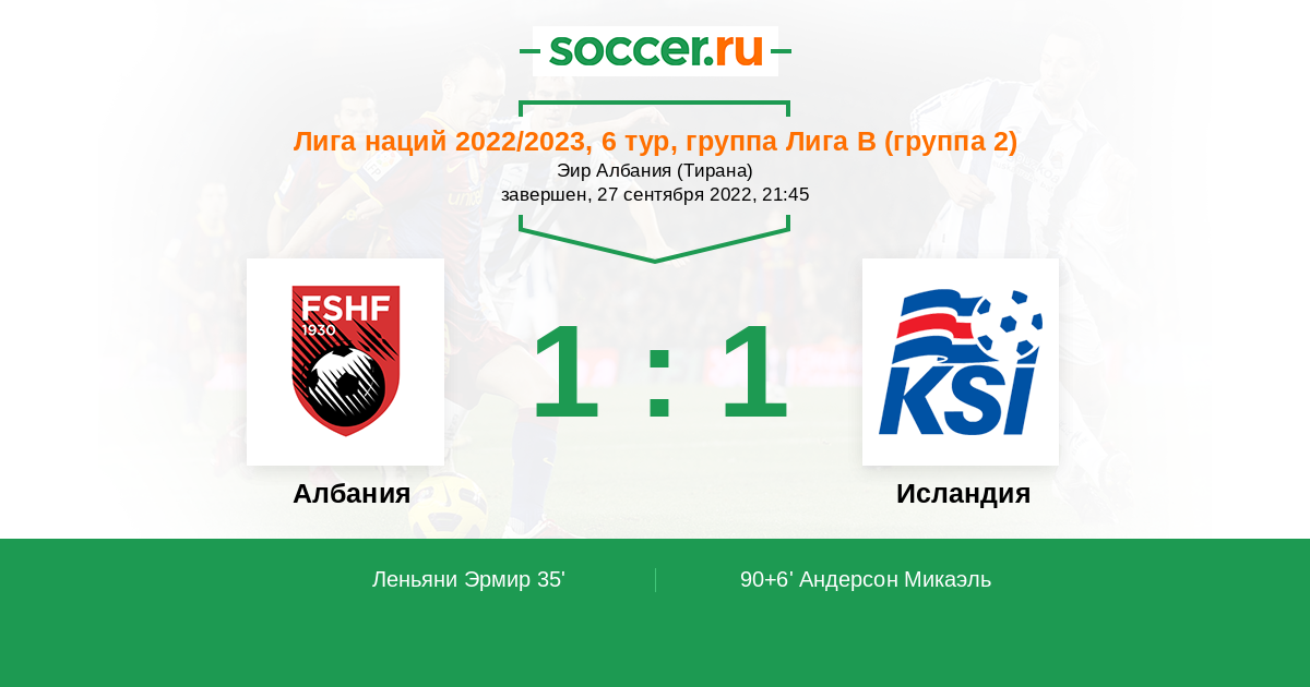Протокол матча Албания против Исландия