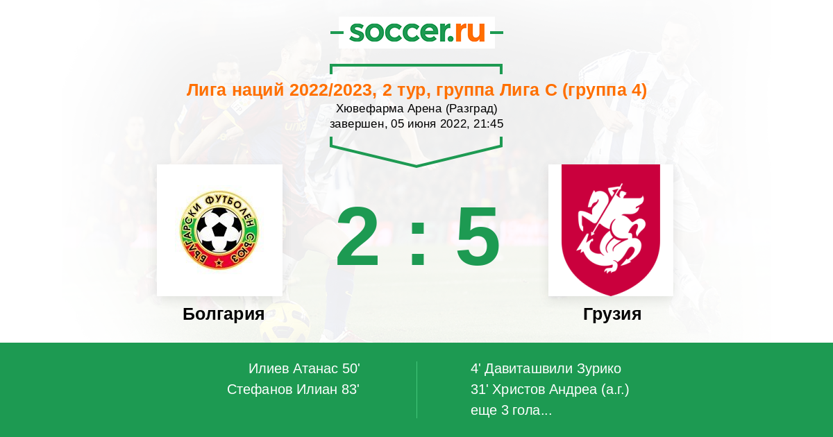 Протокол матча Болгария против Грузия