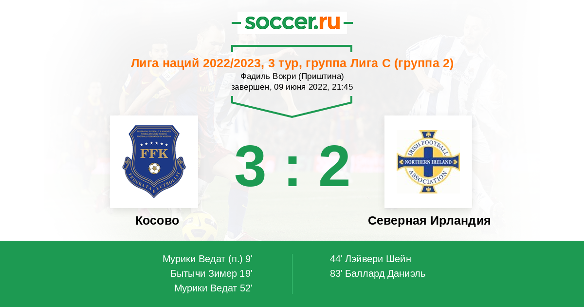 Протокол матча Косово против Северная Ирландия