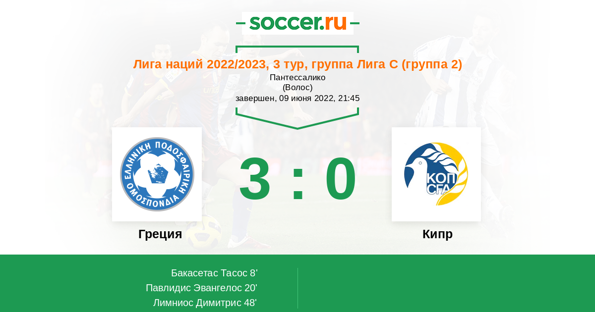 Протокол матча Греция против Кипр