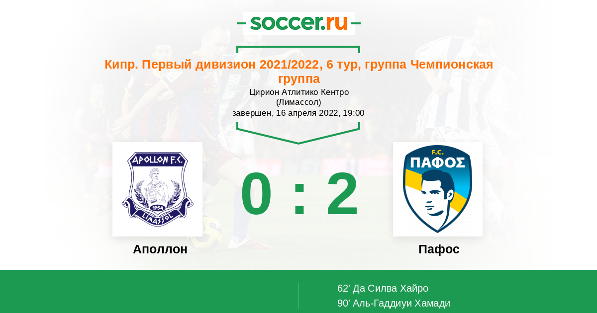 Протокол матча Аполлон против Пафос