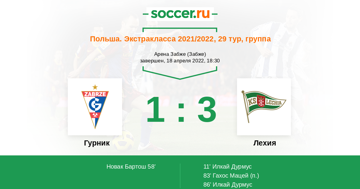 Протокол матча Гурник против Лехия