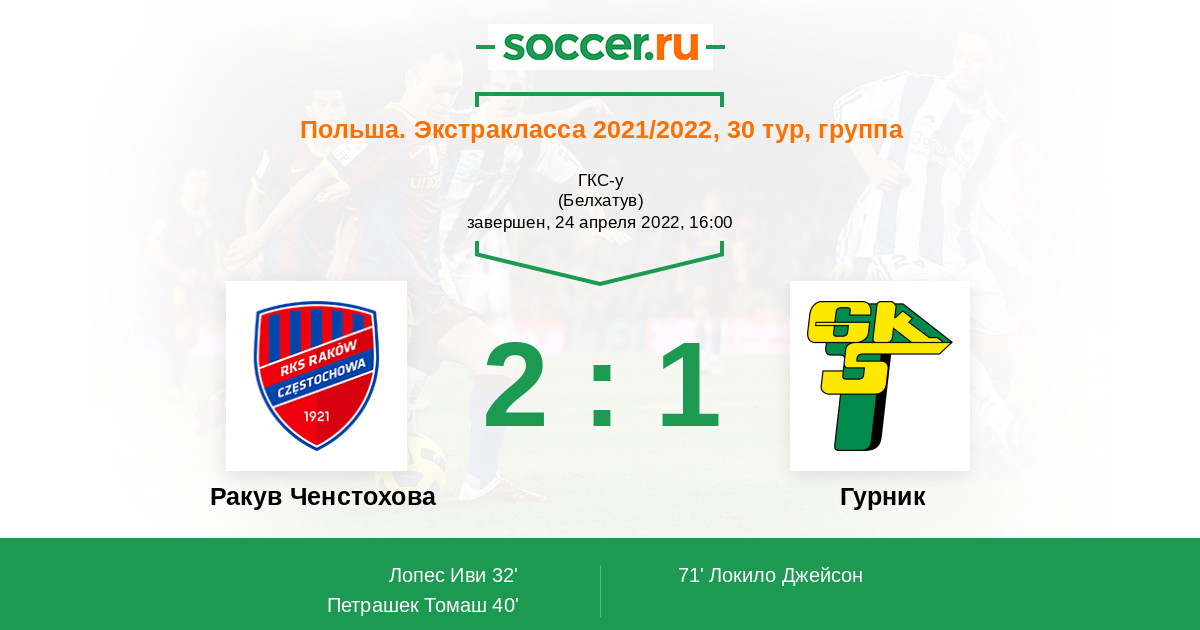 Протокол матча Ракув Ченстохова против Гурник