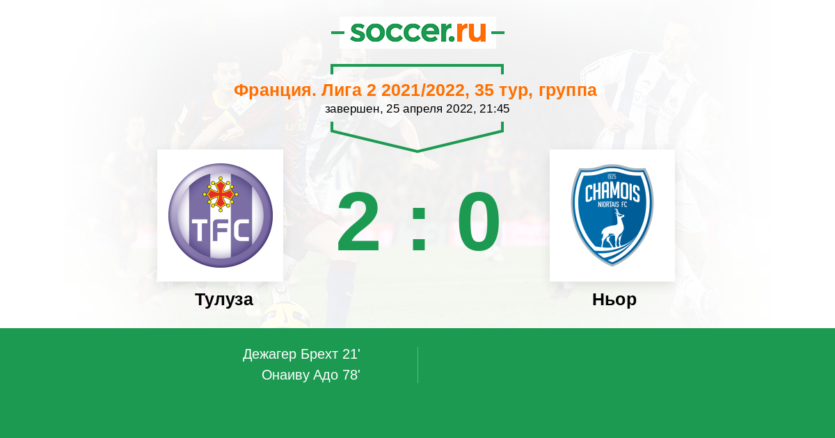 Протокол матча Тулуза против Ньор