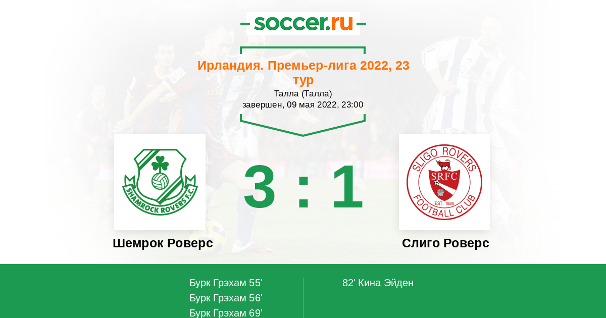 Протокол матча Шемрок Роверс против Слиго Роверс