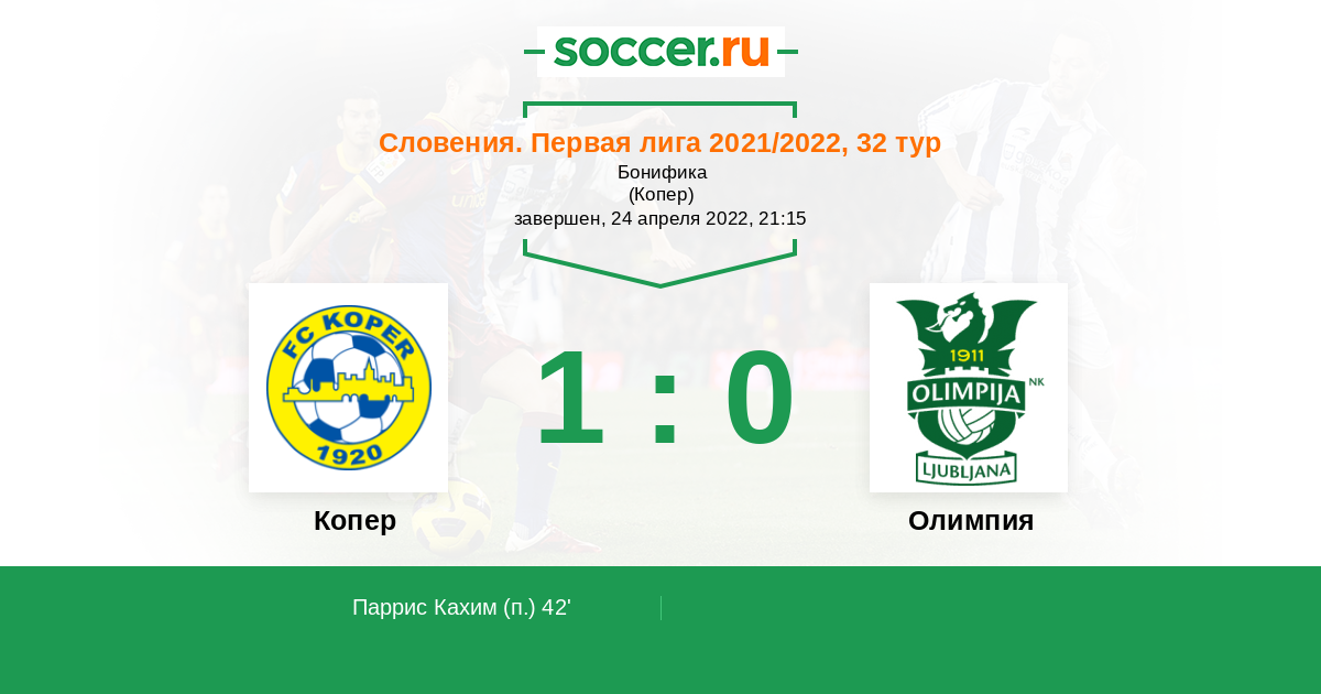 Протокол матча Копер против Олимпия