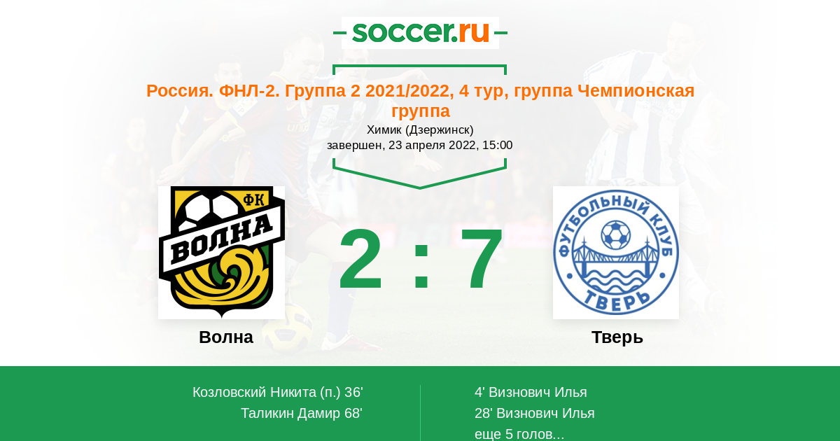 Протокол матча Волна против Тверь
