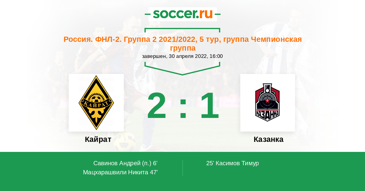 Протокол матча Кайрат против Казанка