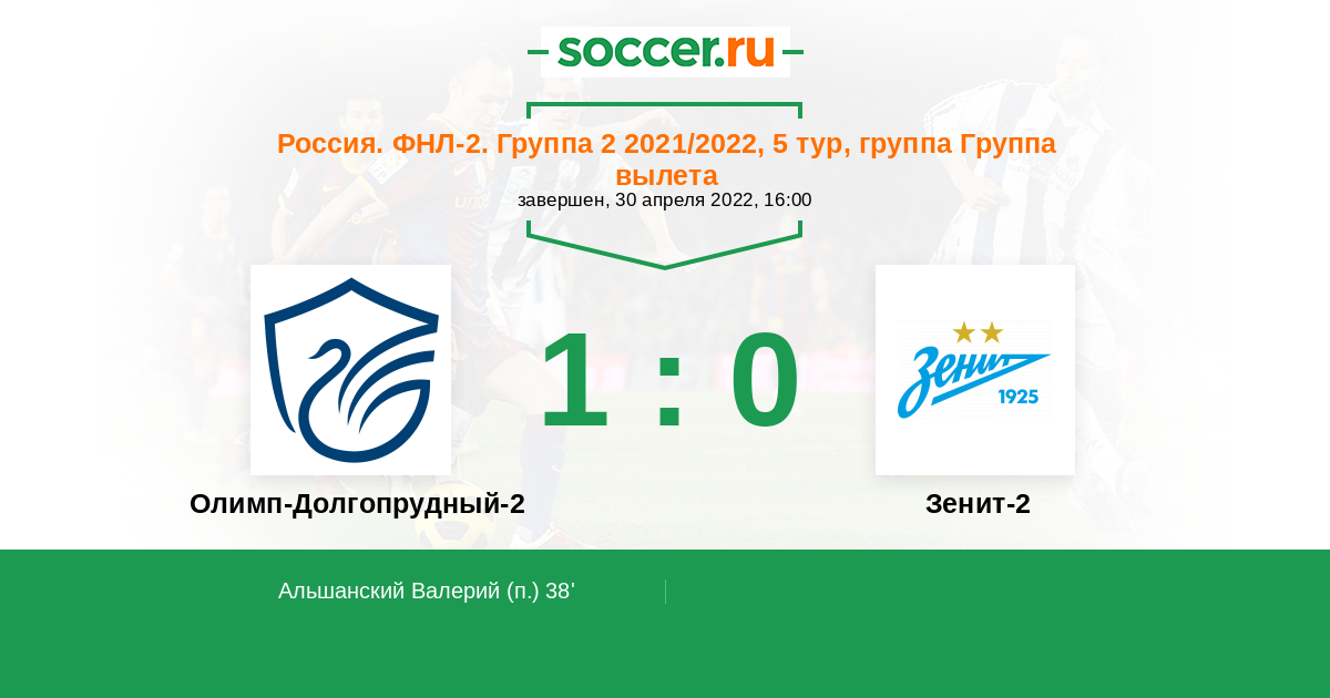 Протокол матча Олимп-Долгопрудный-2 против Зенит-2
