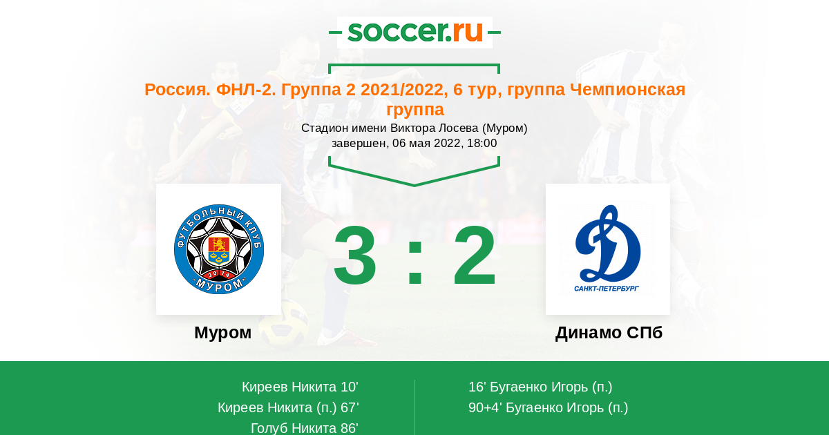 Протокол матча Муром против Динамо СПб